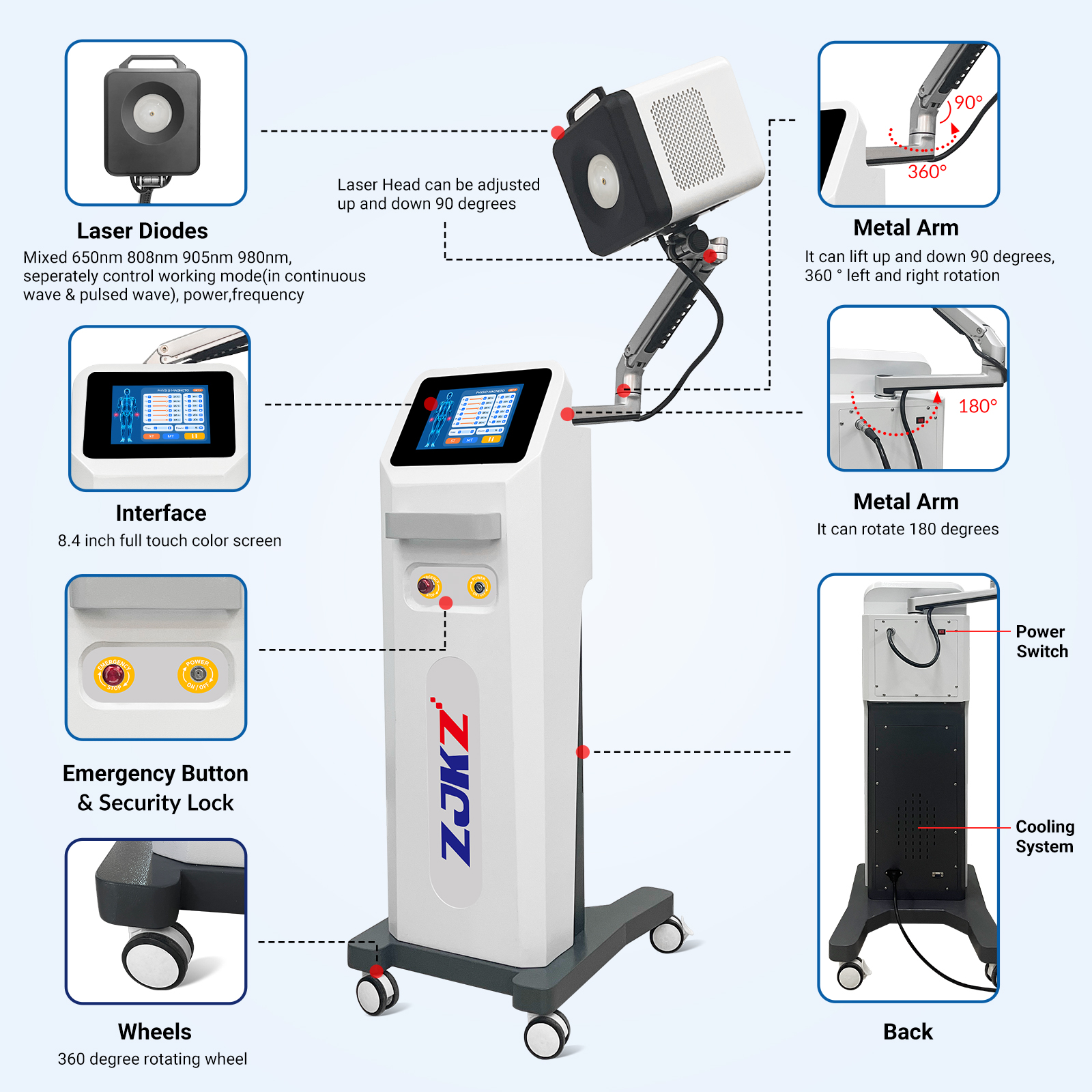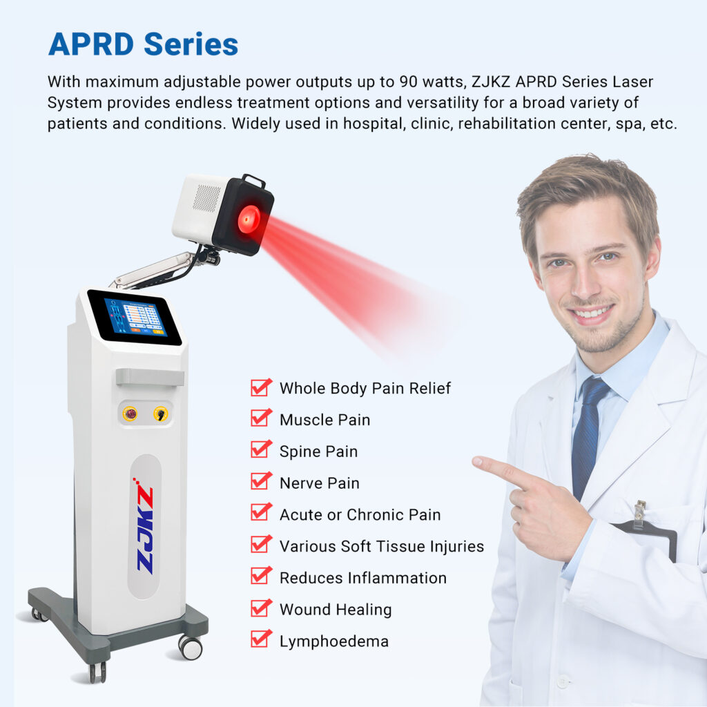 Adjustable power (10W-90W) fits diverse clinical needs: 10W-15W for chronic pain, mild postoperative recovery and superficial inflammation; 30W-60W for deep tissue repair and musculoskeletal pain; 70W-90W for minimally invasive surgeries (e.g., endovenous laser ablation). It eliminates the need for multiple devices, boosting efficiency and profitability.
