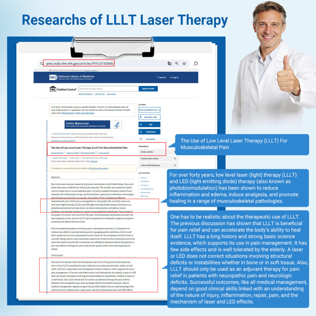 MLS cold laser therapy is a non-invasive medical treatment that uses light of a specific wavelength to treat multiple diseases. It’s scientifically proven to be effective and have been widely used by: Doctors, Kinesiotherapist, chiropractors, physiotherapists, orthopedist, veterinarians, home use and so on. Laser therapy is used for healing and pain relief, stimulate repair of tissues, reduce inflammation and relieve pain in musculoskeletal disorders.