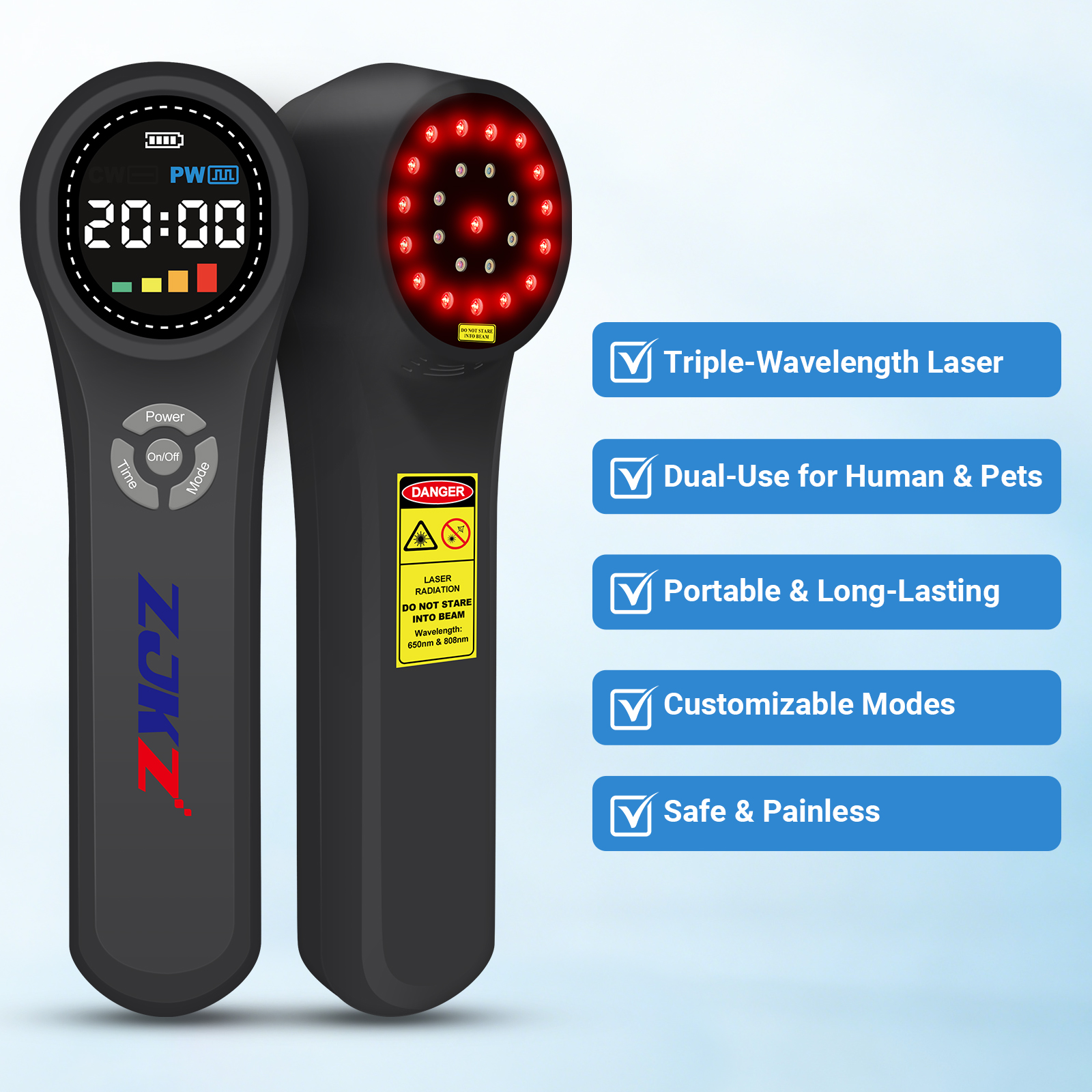 Wavelength: 660nm*16pcs*10mW+808nm*4pcs*200mW+980nm*4pcs*200mW