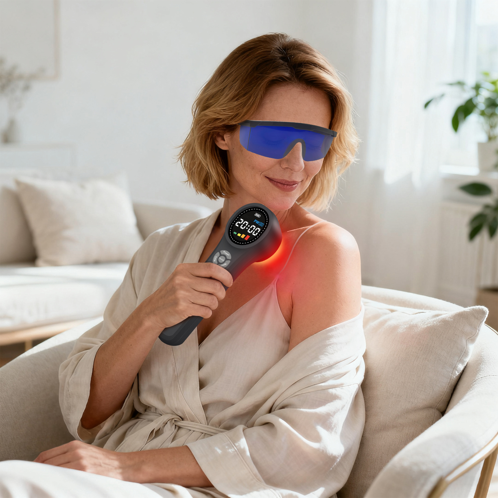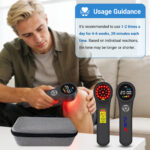 It’s recommended to use 1-2 times a day for 4 weeks, 20 minutes each time (according to your physical condition). The light therapy must be applied directly on the skin, without clothing covering and without distance from the skin, and please try different modes: pulsed and continuous may be different for different conditions (pulsed is better than continuous for most applications except nerve regeneration), and please note that the results will be better after 4 weeks of persistent use at 100% full power 1-2 times a day, each time each part of the body is irradiated for about 20 minutes.