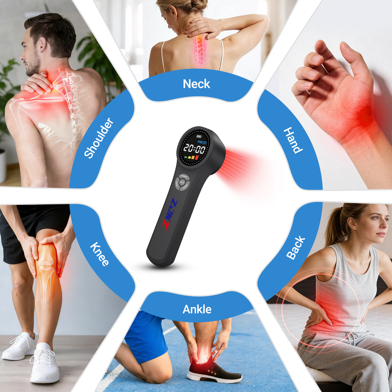 Invisible to the naked eye, the 810nm near-infrared laser has strong penetration, reaching deep tissue layers. It precisely eases pain in deep muscles and joints (such as knee arthritis, cervical spondylosis, rheumatoid arthritis, frozen shoulder, and herniated discs), targeting the root cause of chronic discomfort.