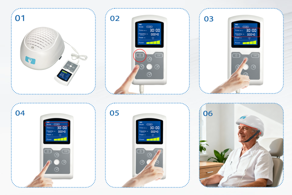 Preclinical studies have shown that 1070nm light energy penetrates brain tissue more deeply, reduces neuroinflammation, promotes neuronal survival, and prevents neurodegeneration.It’s important to note that the 1070nm wavelength is invisible to the naked eye.This is normal and does not mean the device is turned off or malfunctioning.