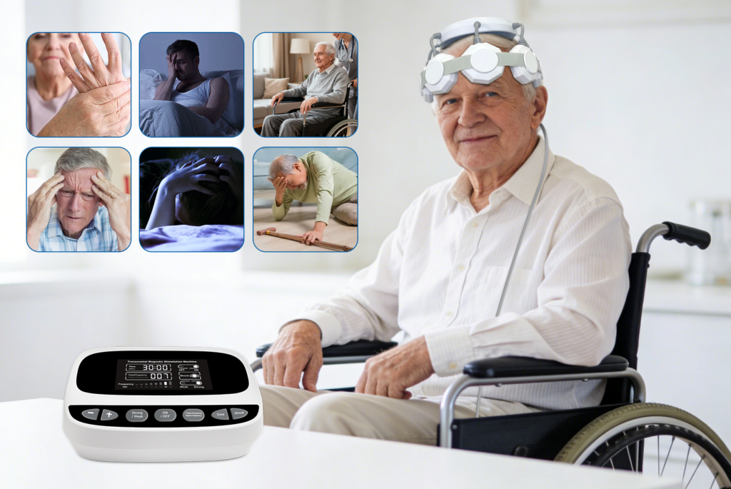 It targets mental health issues (depression, anxiety, PTSD, OCD), neurological disorders (Parkinson’s, stroke/TBI recovery, Alzheimer’s), chronic pain/migraines, addiction, insomnia, cognitive decline, tinnitus and epilepsy.